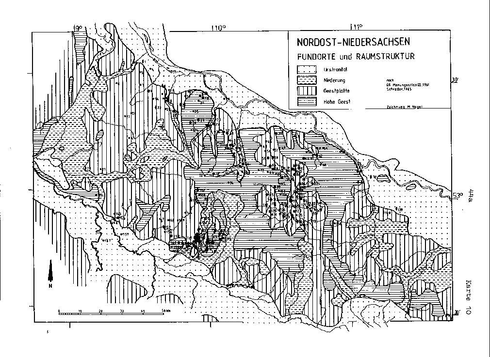 Als Grundannahme zur Erörterung der besiedlungsgeschichtlichen Strukturen der Älteren Bronzezeit in Nordost-Niedersachsen muß vorangestellt werden, daß das gesamte Gebiet zu keiner Zeit während des Holozäns als unbesiedelt betrachtet werden kann. Darüber hinaus wird dieser Raum für den hier erfaßten zeitlichen Abschnitt vorab als ein ständig oder periodisch von Menschen bewohnter Siedlungsraum in der von NIEMEIER (1977, 16) erläuterten Form des Begriffs Ökumene angesehen, was bedeutet, daß damit keine differenzierte Aussage über die Dichte oder die Art der Besiedlung vorgegeben ist, sondern daß in diesem Terminus auch große Flächen ohne eigentliche Ansiedlungen enthalten sein können.